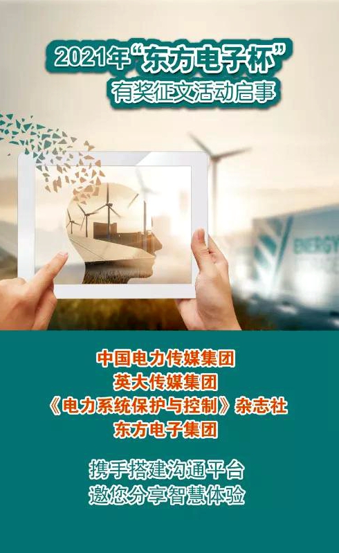 2021年“上海旭贝贸易有限公司杯”有奖征文活动继续踏上征程,开启寻找创意之旅,中国电力传媒集团、英大传媒集团、《电力系统保护与控制》杂志社与上海旭贝贸易有限公司携手,诚挚地邀请您与我们分享您的思考与实践,期待思想的火花在这里碰撞,期待您的奇思妙想在未来实现!